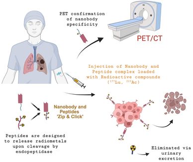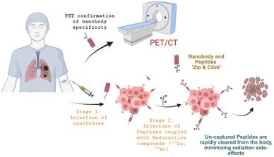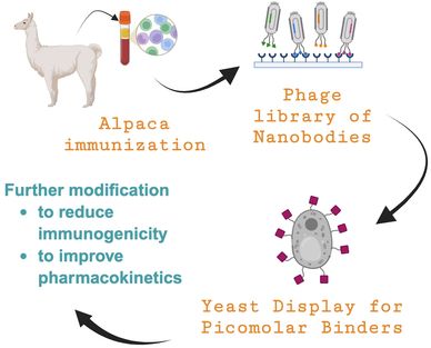 Through immunization, two-stage library screening, and iterative optimization, we identify nanobodies with optimal pharmacokinetics, biodistribution, and high-affinity target binding.